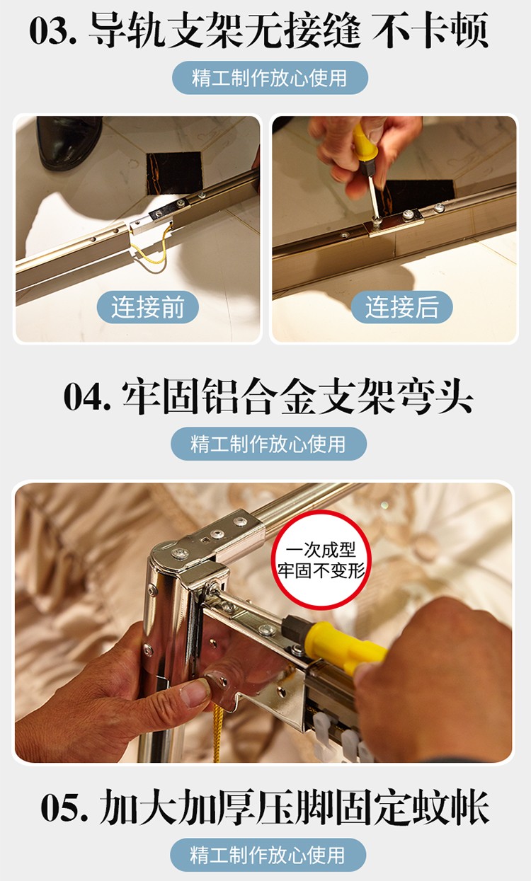Bruno home textile mosquito net 2m bed U-shaped pull rope manual guide rail three door court bed net 1.8m bed floor net 1.5m bed thickened stainless steel net [manual type] - white 1.8x2.2m bed applicable [picture price brand quotation] - Jingdong
