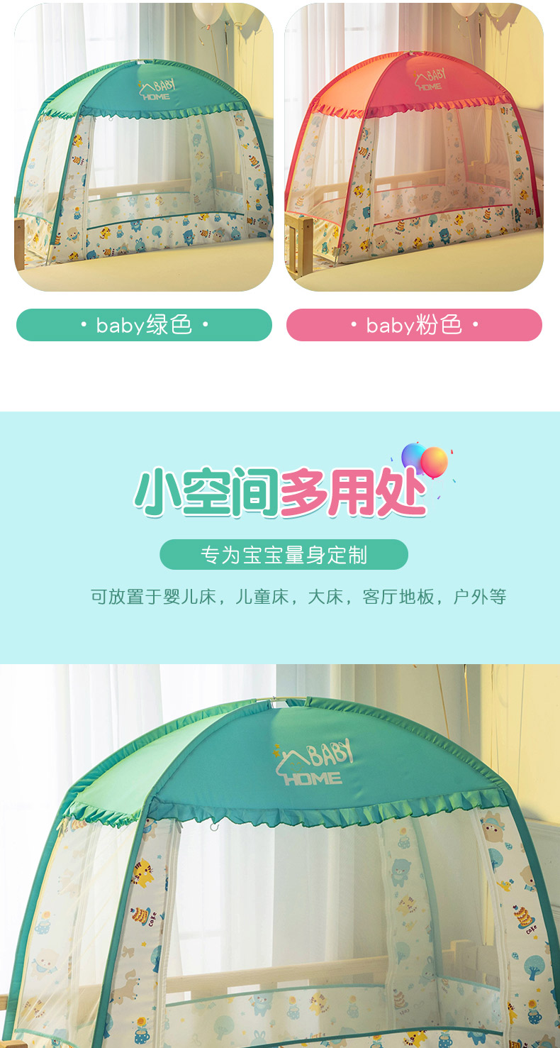Erfeng children's yurt mosquito net baby child anti falling mosquito net full bottom reinforcement thickening cartoon baby bed boy girl Fan Princess Room kindergarten nap 1.2m home green 120 * 200 [picture price brand quotation] - Jingdong
